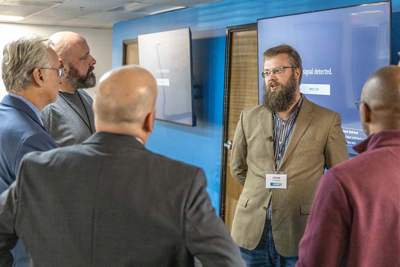 Hosted at Logic’s Ann Arbor Innovation Center, the event featured keynote presentations from Adam Sypniewski, CTO of Deepgram; Michael Singer, CEO of DroneView Technologies; and Andy Hsiao, Engineering Manager at Logic Solutions. Guests included regional technology leaders, business executives, and innovators eager to witness firsthand the advances shaping the next wave of intelligent systems.