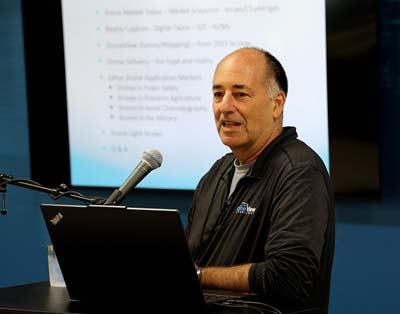 Michael Singer, CEO of DroneView Technologies, demonstrated how drones are significantly advancing data collection and geospatial analytics. His presentation showcased real-world examples of aerial mapping, inspection, and IoT integration, revealing how drone technology is creating faster, safer, and more cost-effective ways to understand our physical world. “We’re not just flying cameras anymore,” said Singer. “We’re flying data platforms that drive smarter decisions on the ground.” He also touched on applications in agriculture, the military, public safety, cinematography and even light shows where hundreds of drones light up the sky.